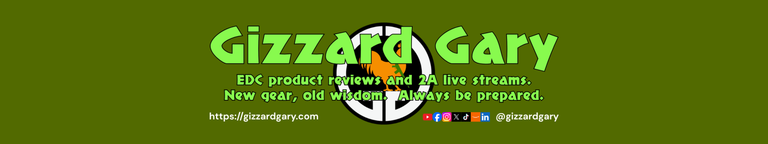 Gizzard Gary, my YouTube channel established in 2017, is the flagship of my social media. I produce EDC product reviews and 2A live streams. I am an Amazon video influencer, and am an affiliate with several companies. This brand also has a social media presence on many other platforms (see links at bottom of page).
